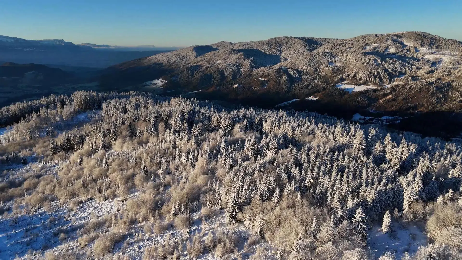 des sapins, Le drone capte la magie d'un temps éphémère.
