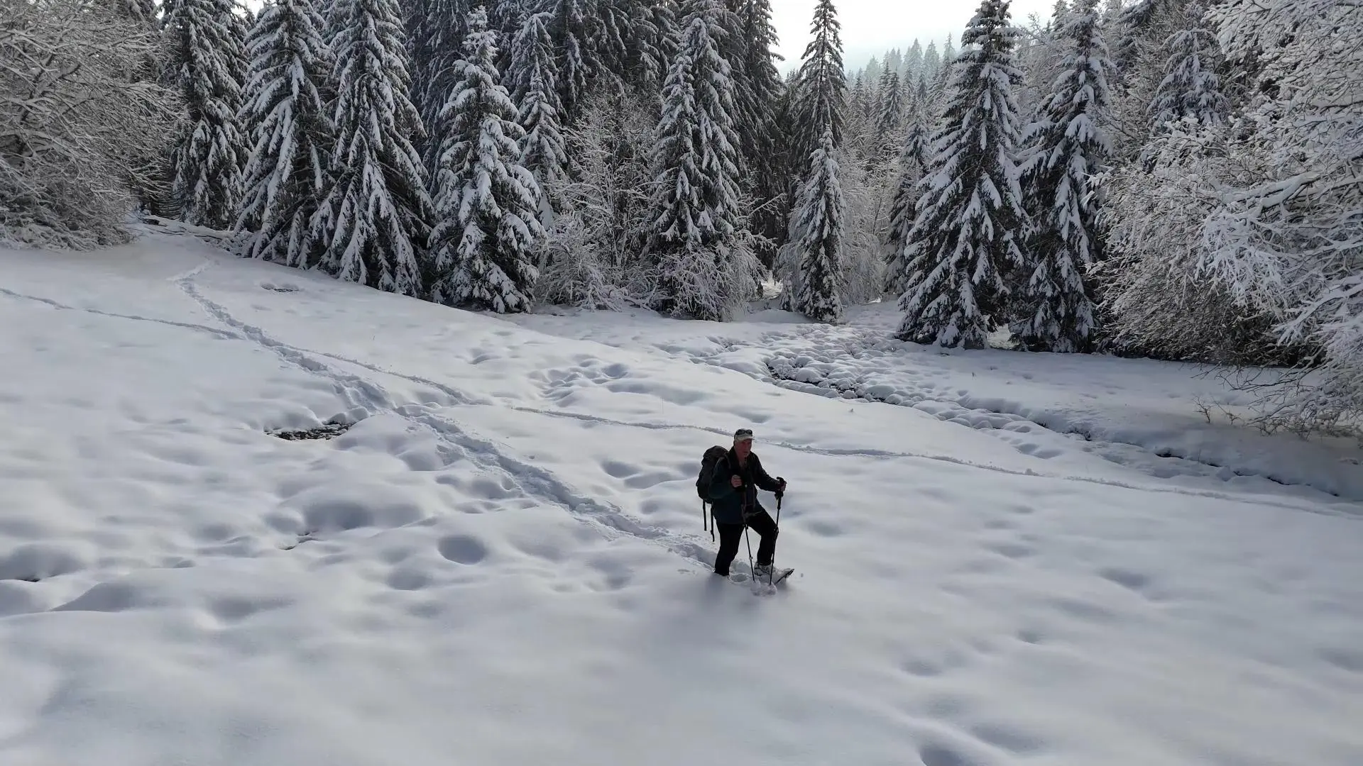 Bercé par le doux crissement des raquettes sur la neige fraîche, explorez les sentiers hivernaux, enchanteurs et